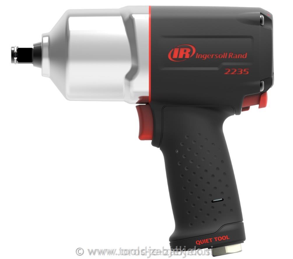 Predstavljamo Ingersoll Rand 2235 Series udarni privijač™. Z 1760 Nm maksimalnega navora in tehta samo 2,1 kg, 2235 ima najboljše razmerje med močjo in težo kakršnega koli udarnega privijača na trgu. Njena zanesljivost je legendarna, predstavlja ga aluminjasto ohišje kadiva in jekleno ploščo za zaščitito svojega fino uglašen dvojnega - kladiva . Privijač je bil preizkušen v izredno težkem okolju, kjer je bil podvržen padcem in bil je gnan do njegovih maksimalnih mej vzdržljivosti, da bo vedno delovala ko jo boste najbolj potrebovali. Privijač 2235 je močan, vzdržljiv in zanesljiva gonilna sila, ki jo prinaša vsakič, ko boste potrebovali opraviti pravo delo pravilno.