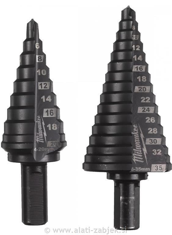 - stopenjski svedri: 4 - 20 mm, 6 - 35 mm