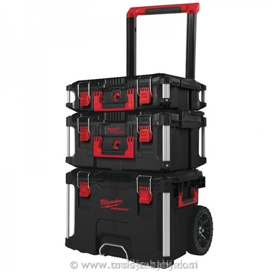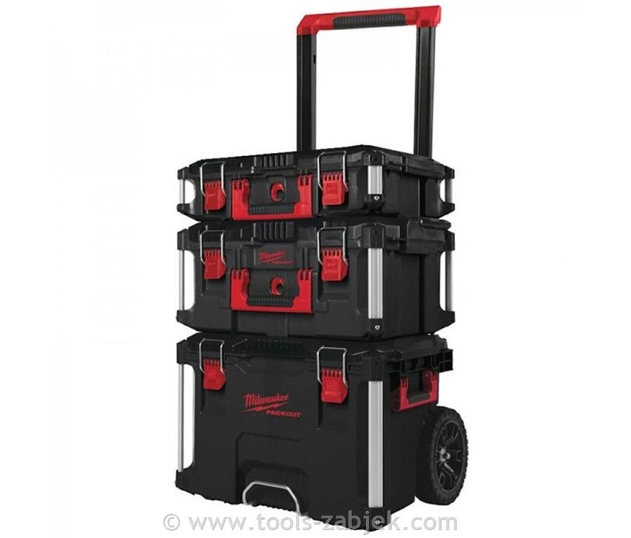 Kovčki in torbe za orodje PACKOUT so modularni sistem za shranjevanje, transport in organiziranje električnega orodja in pribora. Uporabnikom omogoča samostojno kombiniranje in spajanje elementov iz široke ponudbe kovčkov za orodje, organizatorjev in torb za shranjevanje orodja. Vsak kovček za orodje modularnega sistema, uporabnikom omogoča, da sami ustvarjajo številne različne postavitve, ki so popolnoma prilagojene njihovim potrebam shranjevanja in transporta orodja v kovčkih in torbah.