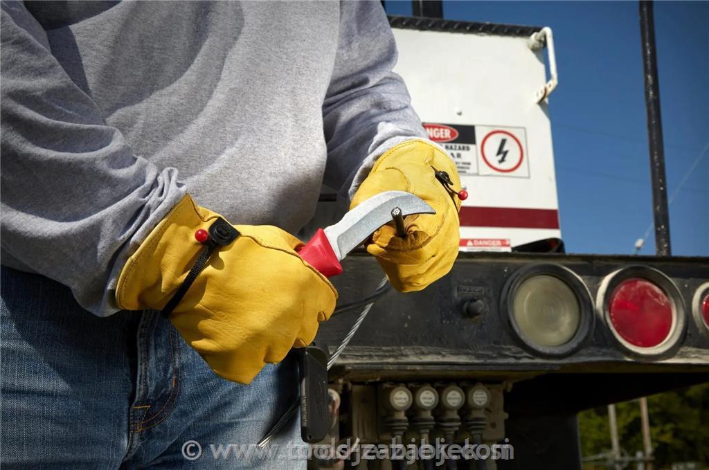 - Hawkbill nož s fiksnim rezilom je idealen za odstranjevanje žic in kablov