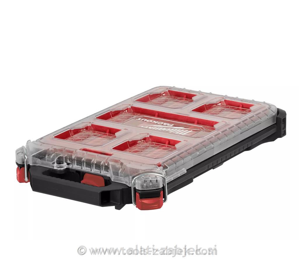 - Del PACKOUT sistema za shranjevanja. - Izdelano iz polimerov odpornih na udarce. - V notranjost ima 1 veliko posodo in 4 majhne posode. Vse vsebujejo razdelilnike za lažjo organizacijo. - IP65 zaščita pred vodo in razbitinami na gradbišču.