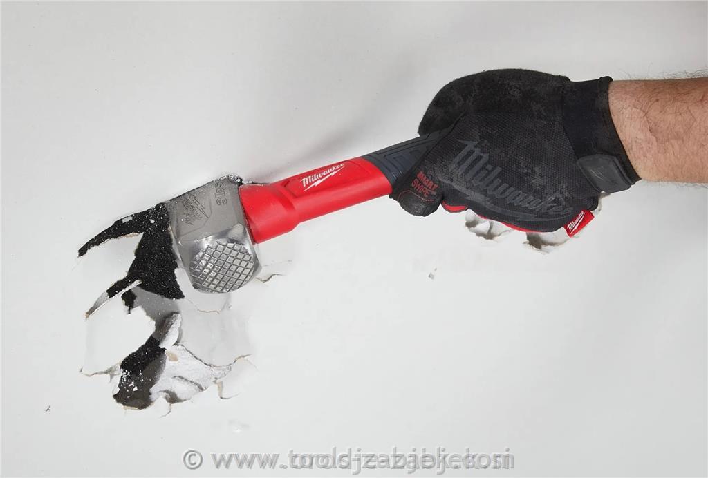 - rezkana stran zagotavlja dodaten oprijem in zmanjšuje premikanje obraza pri udarjanju z dleti ali velikimi žeblji, gladka stran preprečuje poškodbe udarjenih predmetov