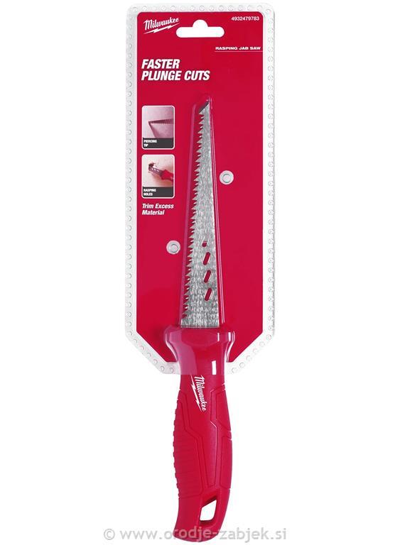 - vgrajene rašplaste luknje: Omogoča hitro povečanje lukenj ali glajenje grobih robov - ročaj prevlečen z gumo: Izjemno udobje in manjše drsenje rok - rezilo 150 mm za mavčne plošče ali suhomontažne stene - izredno močno rezilo, odporno za potopno rezanje - površinsko obdelano za zaščito pred rjavenjem