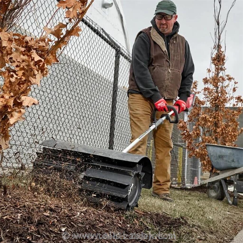 - čiščenje kamenja, listja, umazanije, lubja in drugih odpadkov s travnatih površin ter trdih površin, kot so pločniki, poti, dovozi ali terase