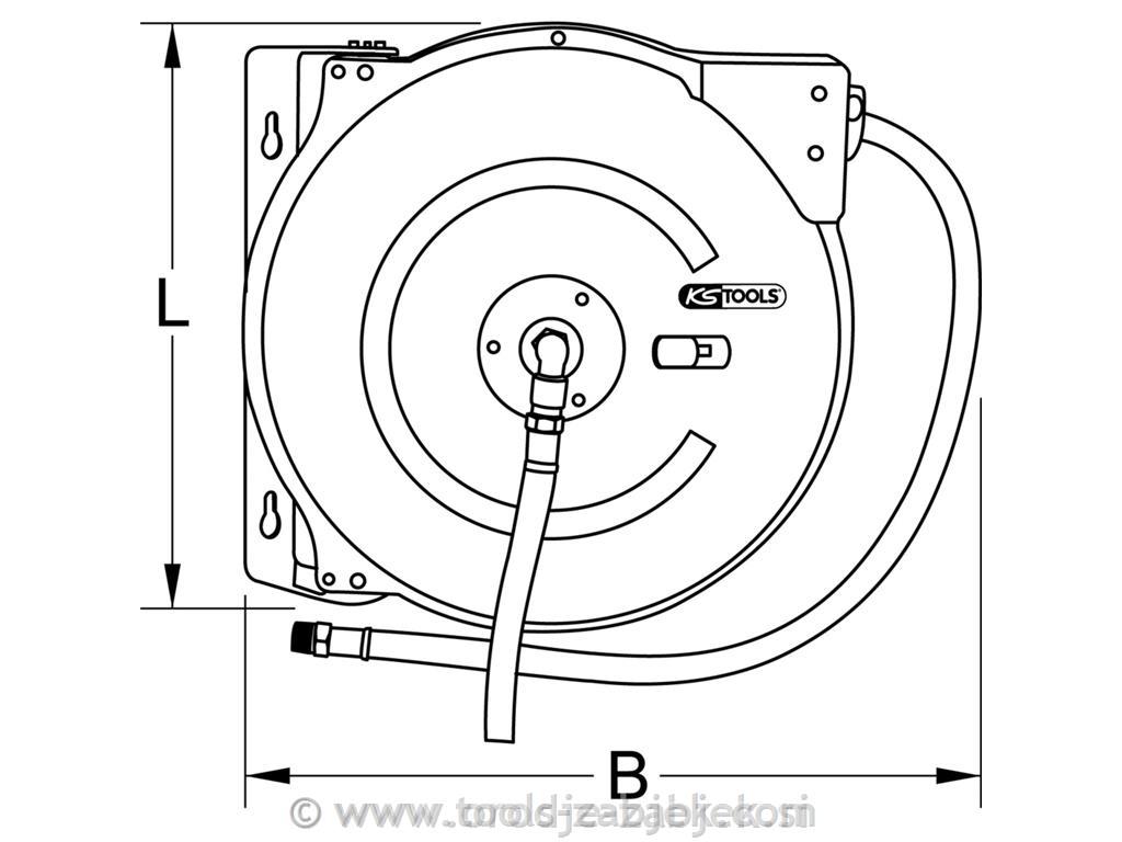 S stenskim držalom. Za stisnjen zrak in vodo. Vključno z 1,5 m priključno cevjo. Ohišje iz umetne mase, odporno na udarce.