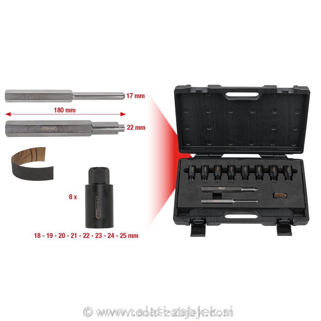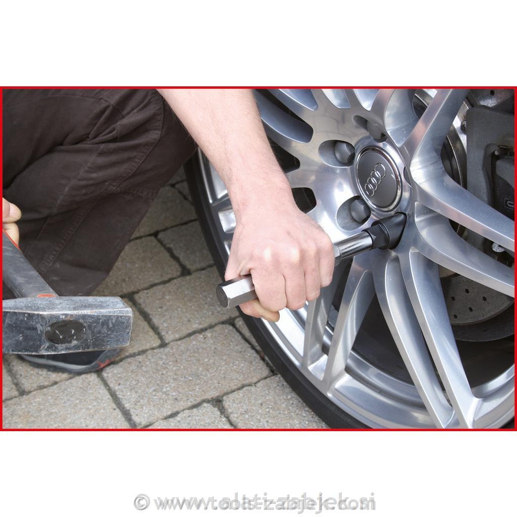 - za hitro in brezhibno sprostitev varnostnih vijakov platišč - konično zožano - ozka izvedba, idealna za ozke pritrdilne odprtine - uporaben za skoraj vse aktualne varovalne sistem koles brez vrtljivih zunanjih tulcev - vključno s trnom za montažo in demontažo - trdna povezava med natičnim nastavkom in glavo - fosfatiran - krom molibden - v stabilnem plastičnem kovčku
