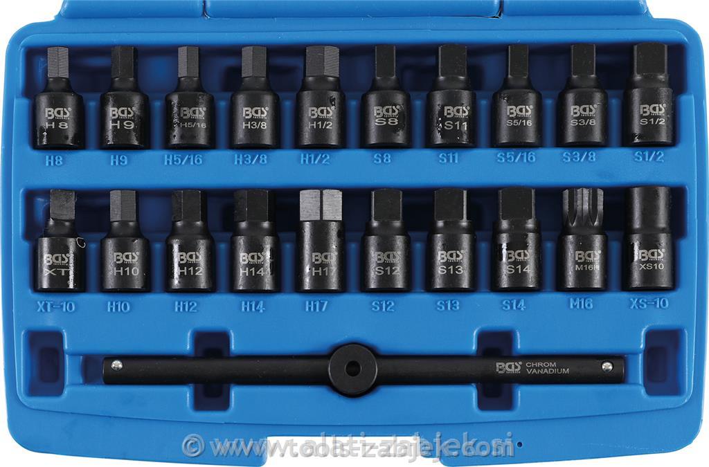 - 9 šestrobih nasadnih ključev: 8-9-10-12-14-17 mm, 5/16 ", 3/8", 1/2 "