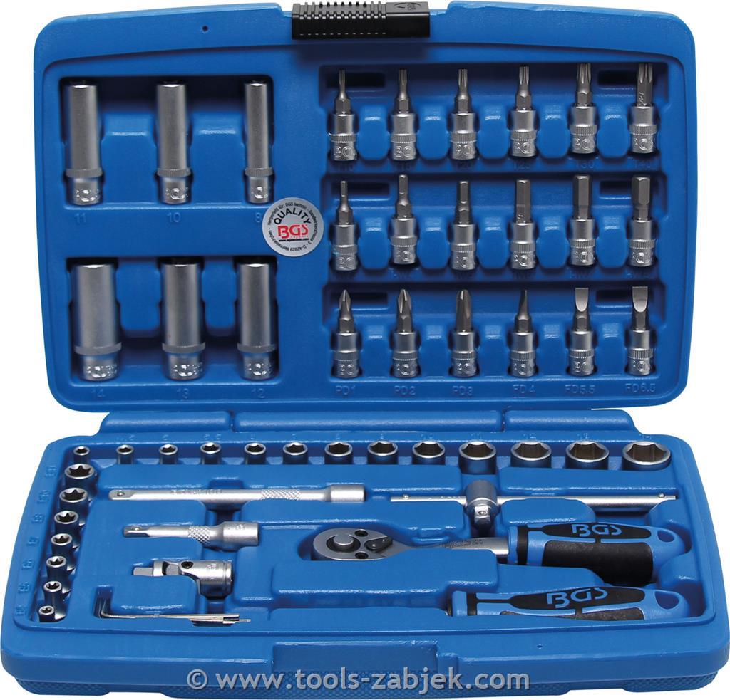 Socket set with extension bars and ratchet, 52-piece BGS TECHNIC