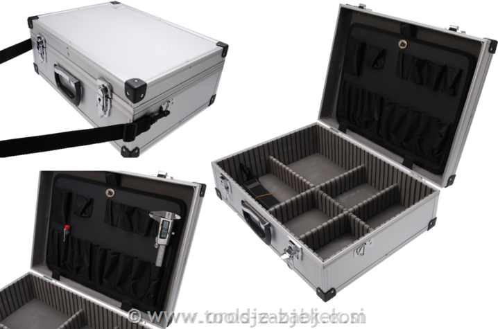 Product description Opis: - s 4 nastavljivimi pregradami - vklj. orodno ploščo in trak za nošenje - notranje dimenzije (spodaj): 320 x 440 x 95 mm - notranje dimenzije (pokrov): 320 x 440 x 40 mm (brez plošče orodja)