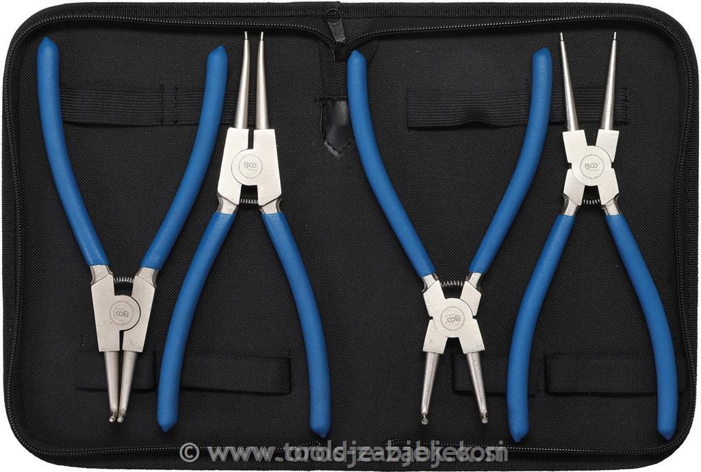 Product description - zakrivljen in ravn tip - za notranje in zunanje segere - gumijast ročaj - tip klešč Ø 2.4 mm - največji razpon: - zunanje klešče (ukrivljene) 36 mm - zunanje klešče (ravne) 39 mm - notranje klešče (ukrivljene) 31 mm - notranje klešče (ravne) 36 mm - pakirane v etuij