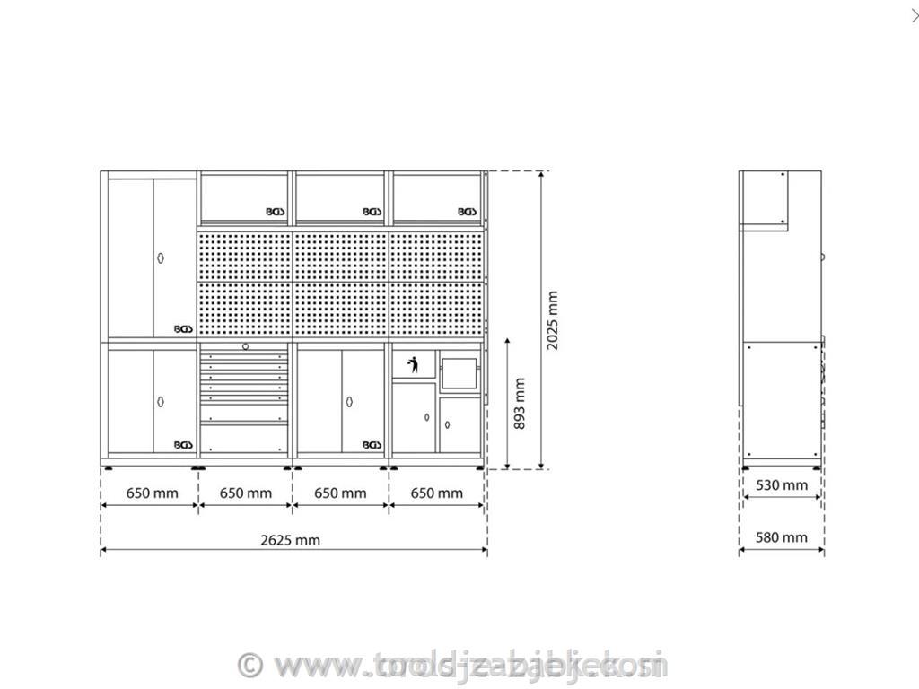 - prilagojeno postavitev opreme lastne delavnice, s kombinacijo z drugimi elementi