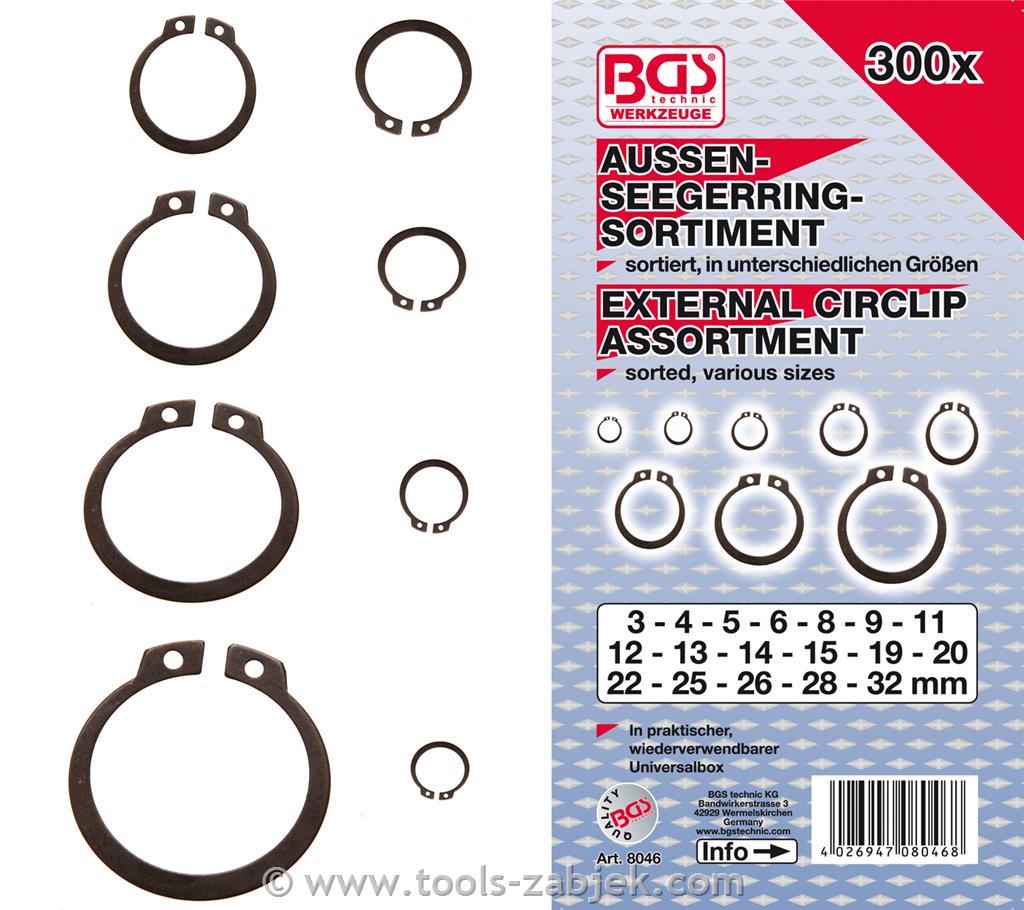 External circlip set 3-32 mm, 300 pcs BGS TECHNIC