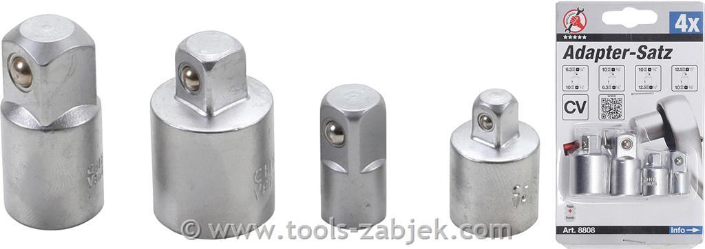 Product description - Vključuje 4 reducirje z naslednjimi prilagoditvami : 1/4 " ženski na 3/8" moški 3/8 " ženski na 1/4" moški 3/8 " ženski do 1/2 " moški 1/2 " ženski na 3/8" moški - kromiran