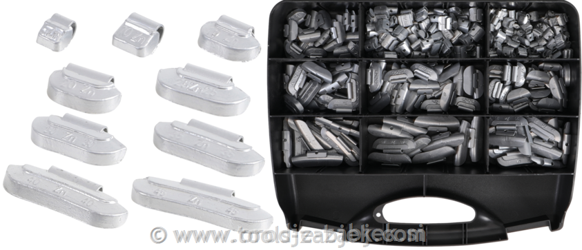 Za jeklene obroče. Za optimalno uporabo s kleščami za uravnavanje teže koles 1539 v škatli za ponovno uporabo (vse velikosti, ki so posamezno na voljo kot komplet za ponovno polnjenje)