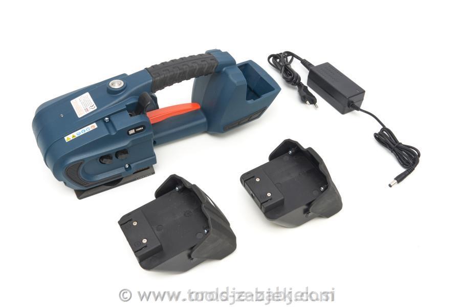 Ta profesionalni aparat je namenjen spajanju plastičnih trakov (PET ali PP) širine od 13 do 16 mm in debeline od 0,5 do 1,2 mm. Deluje na 12-voltno napajanje in je opremljen z dvema zmogljivima baterijama kapacitete 4,0 Ah, kar omogoča neprekinjeno delo tudi v zahtevnih pogojih.