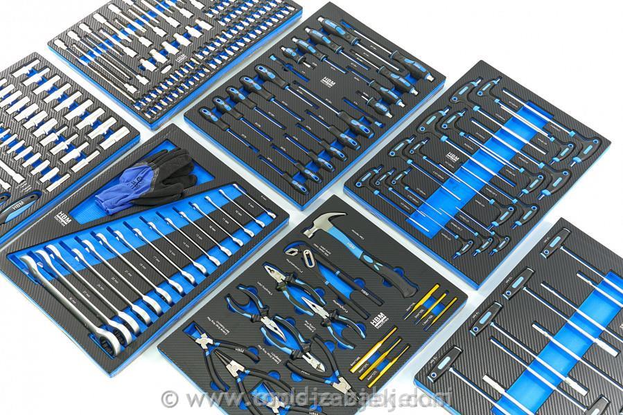Voziček za orodje je opremljen s 7 predali na ležajih.
