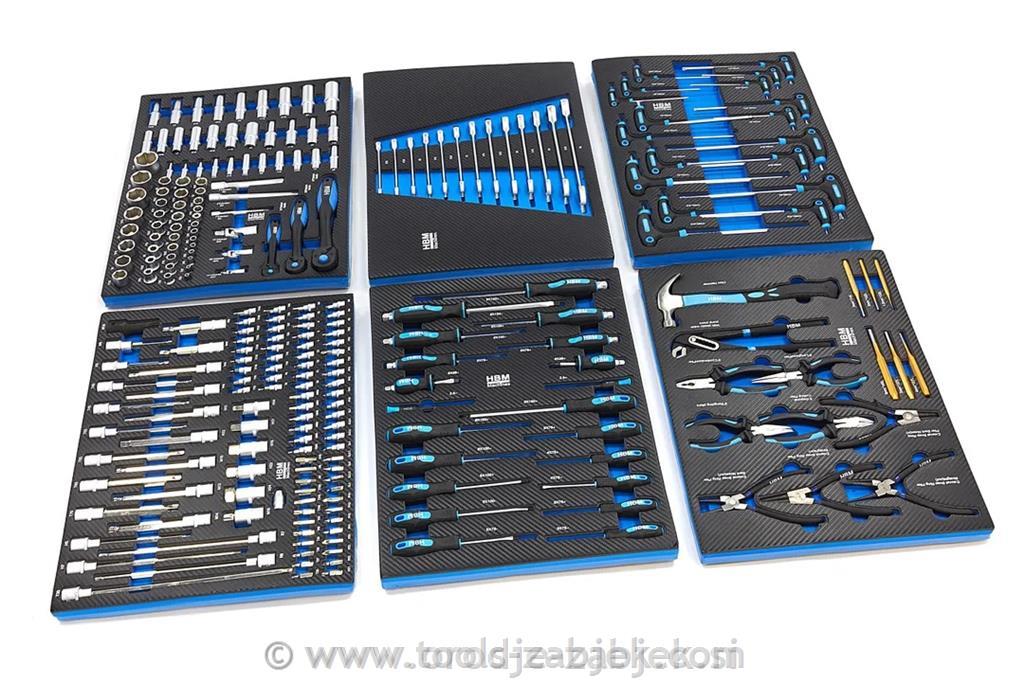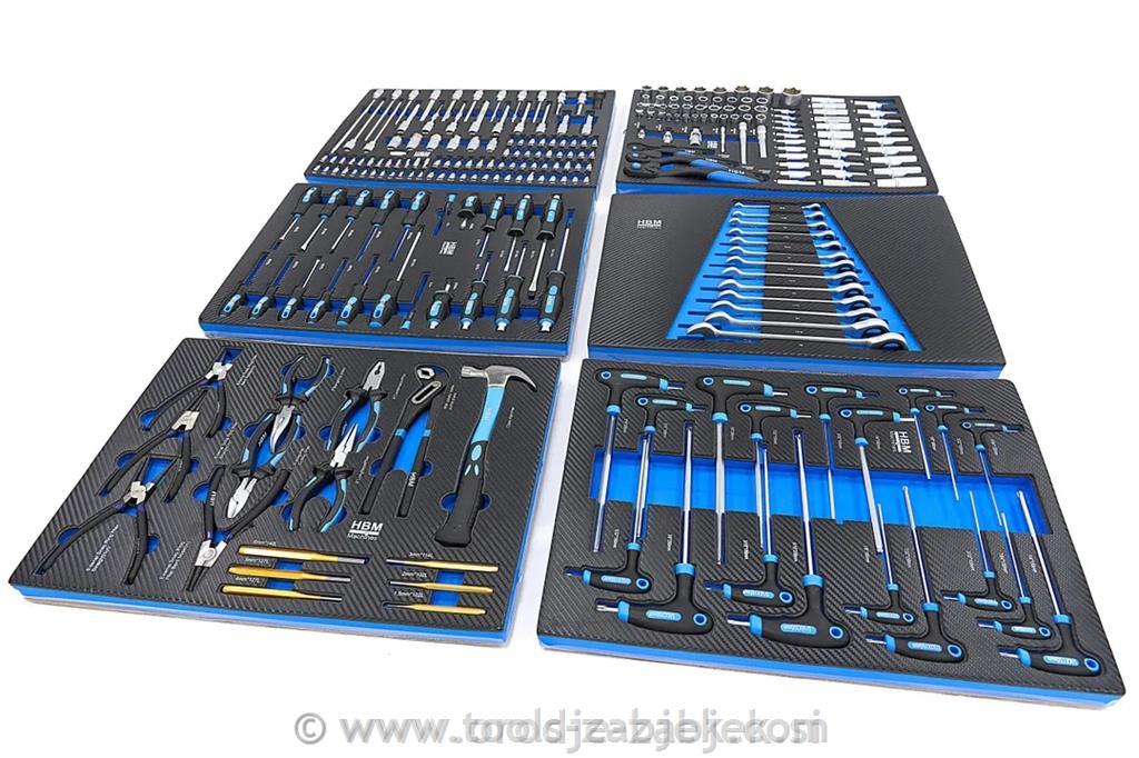 Voziček za orodje je opremljen s 7 predali na ležajih.