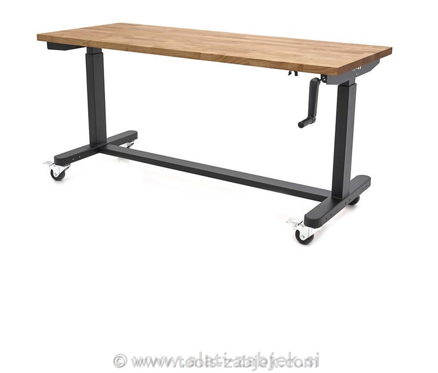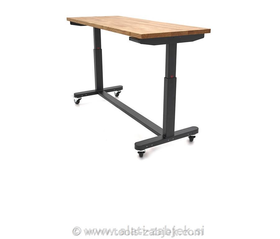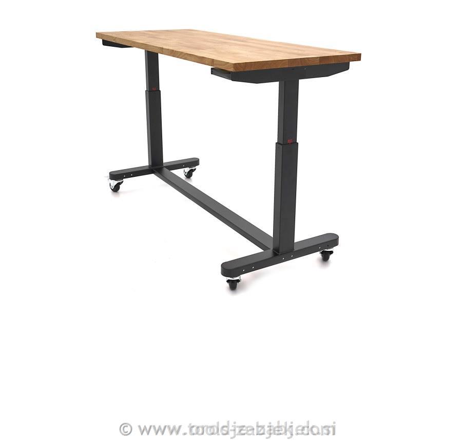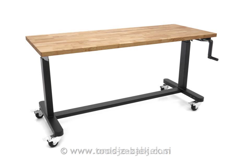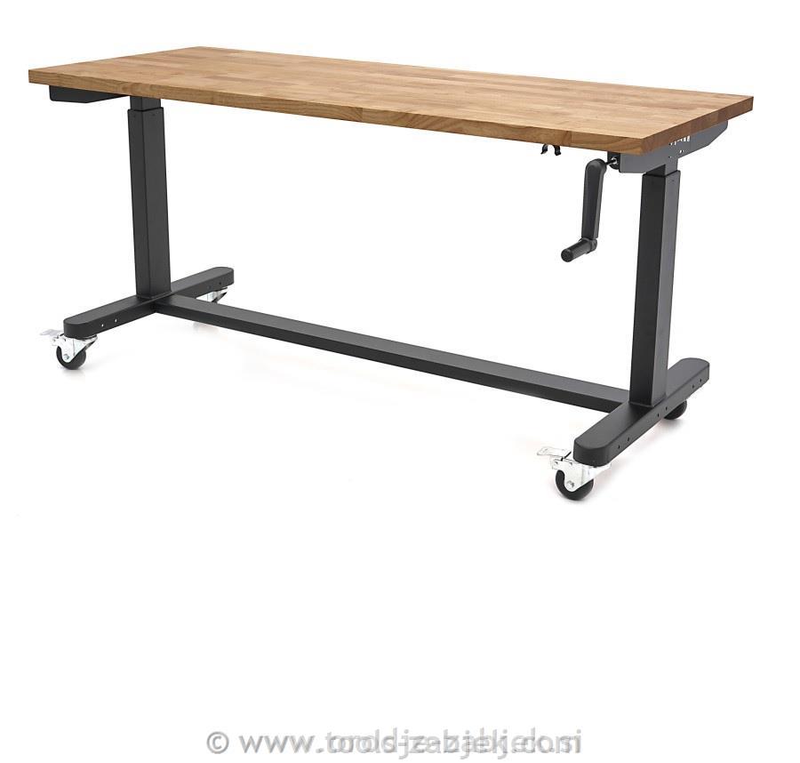 Miza je nastavljiva po višini in ima pod dnom štiri robustna kolesa z zavorami. Tako ga enostavno prepeljete na drugo delovno mesto, lahko pa ga tudi zavarujete. Trdna lesena mizna plošča in robustno podnožje. Delovna miza je dolga preko 1,5 metra, zato lahko na to mizo postavite tudi večje obdelovance.