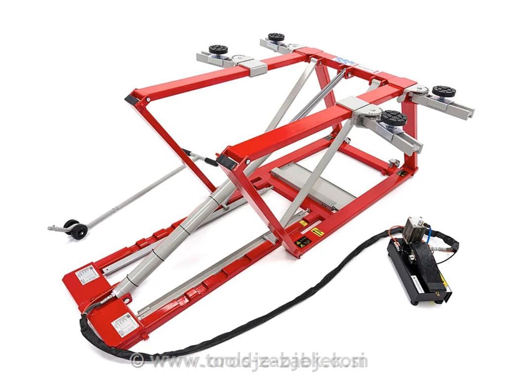 Se ukvarjate z avtomobili – bodisi profesionalno ali kot hobi? Potem je mobilna dvižna ploščad nepogrešljiv pripomoček v vaši delavnici ali garaži. Gre za vsestransko uporabno dvižno platformo, ki je kot nalašč za čiščenje vozila, menjavo pnevmatik ali manjša servisna dela na podvozju in sprednjem delu avtomobila. Dvižna ploščad je popolnoma mobilna, zato za njeno uporabo ni potrebna nobena trajna montaža ali večji poseg v prostor. Dvigalo upravljate z nožnim pedalom – pritisk navzdol dvigne platformo, medtem ko jo potisk navzgor spusti. Za delovanje je potrebna povezava na stisnjen zrak (do 8,5 bara), dvig pa se izvaja preko hidravlične črpalke.Ploščad omogoča zaklepanje v šestih različnih višinah: 500, 600, 700, 800, 900 in 1060 mm, kar omogoča veliko prilagodljivost glede na tip dela, ki ga opravljate. Zaradi izjemno nizke minimalne višine (le 15 cm) je primerna tudi za vozila z nižjo oddaljenostjo od tal.Ključne prednosti: