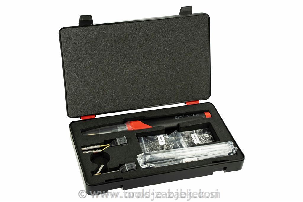 • set vključuje: konico za vroče sponke, plastično varilno konico (maks temp. 500°C), plastična varilna konica z vodilom za varilno palico, 12 plastične varilne palice 150mm (ABS,PP,PE,PS), 3kom nerjaveče jeklene žičnate mreže (50 x 100 mm) in sponke iz ravnega legiranega jekla (50 kosov 0,8 mm & 50 kosov 0,6 mm).