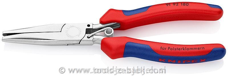 - enostavno pozicioniranje sponk za oblazinjenje: zaporna vzmet drži klešče zaprto, sponka je lahko varno nameščena in pritisnjena