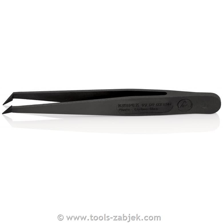 - ESD pincete so izdelane iz 30% plastike, ojačane z ogljikovimi vlakni, so električno in toplotno visoko prevodne ter jih odlikuje visoka odpornost proti obrabi in praskam