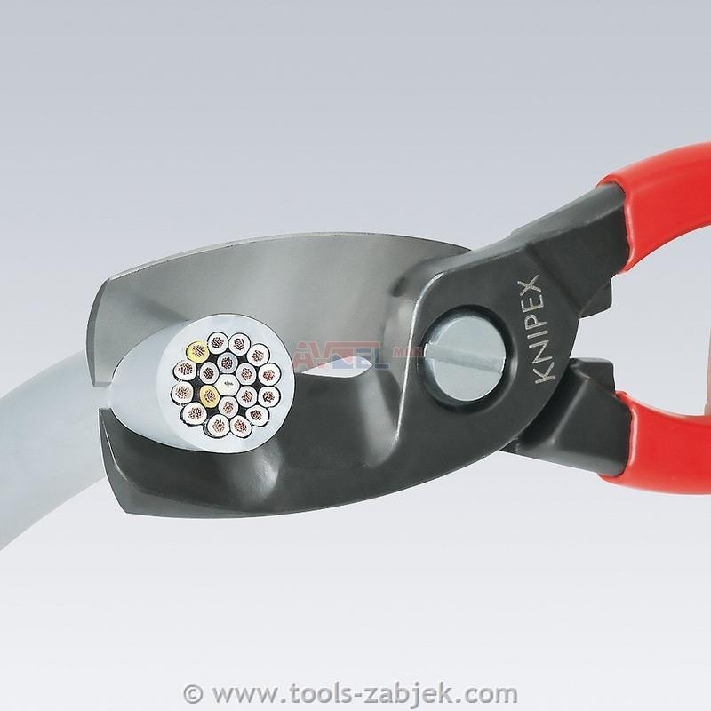 - z deljenjem rezalnih ukrepov v začetno rezanje (izolacijski plašč na sprednjem področju rezanja) in končno rezanje (vodnik na zadnji strani reza), se lahko kabli do Ø 20 mm razrezajo v enoročno