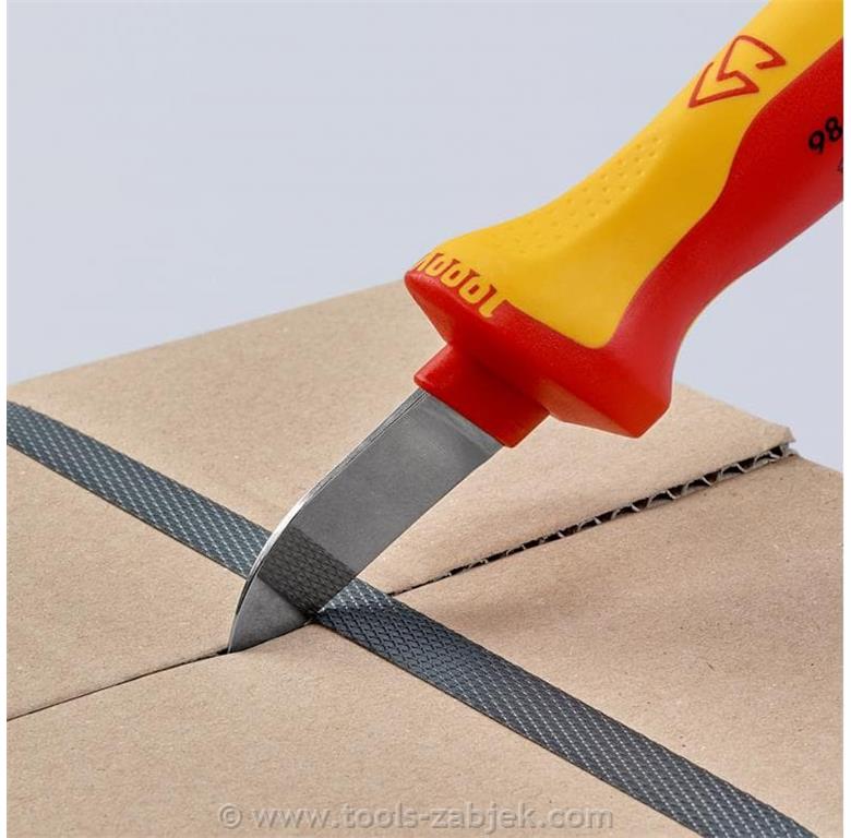 - Vdolbina palca in "kavelj za prste" na koncu ročaja zagotavljata dober prenos sile ob vlečenju rezila