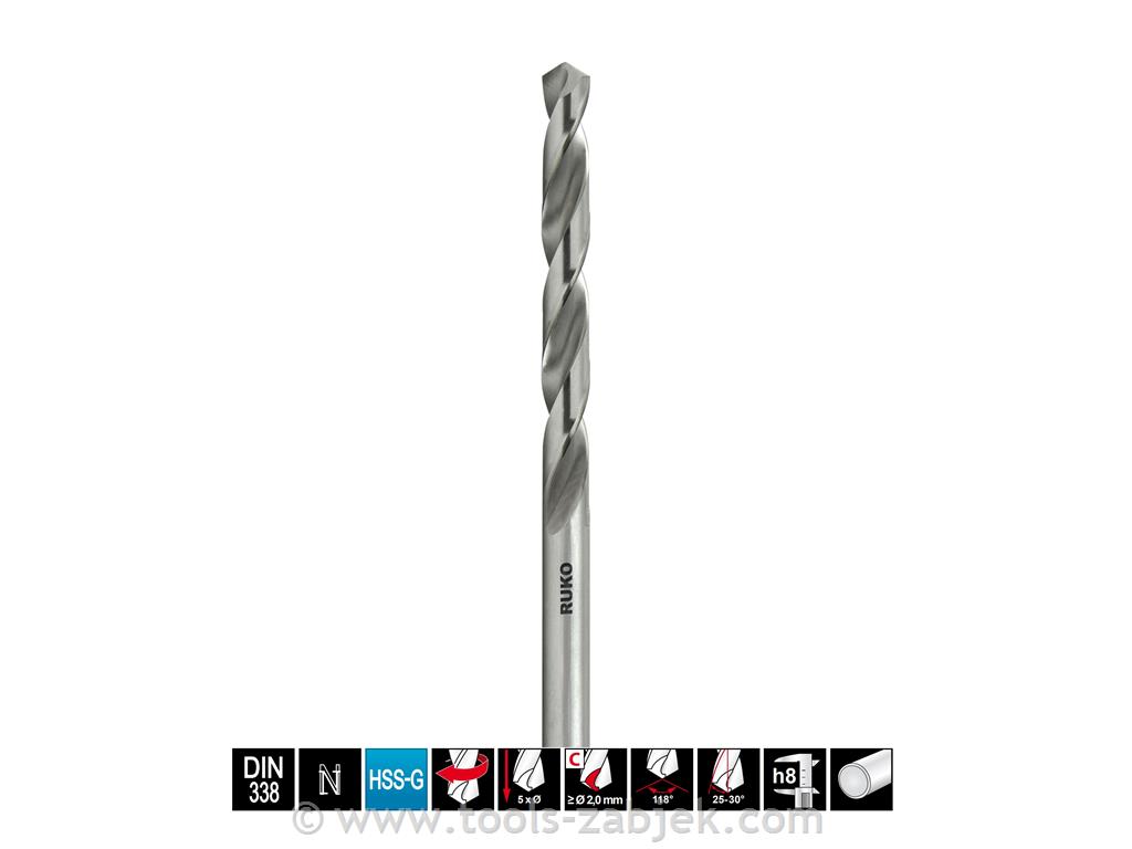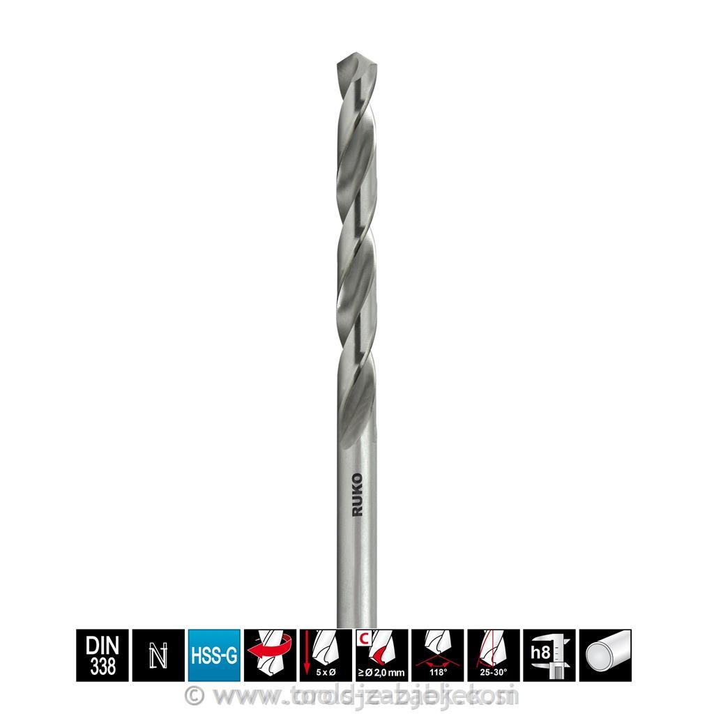 Twist drill bits DIN 338 type N HSS-G RUKO