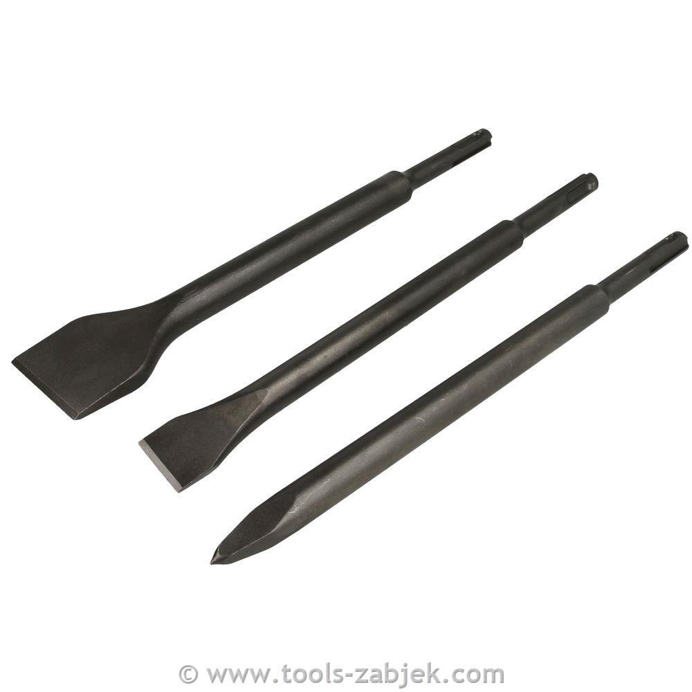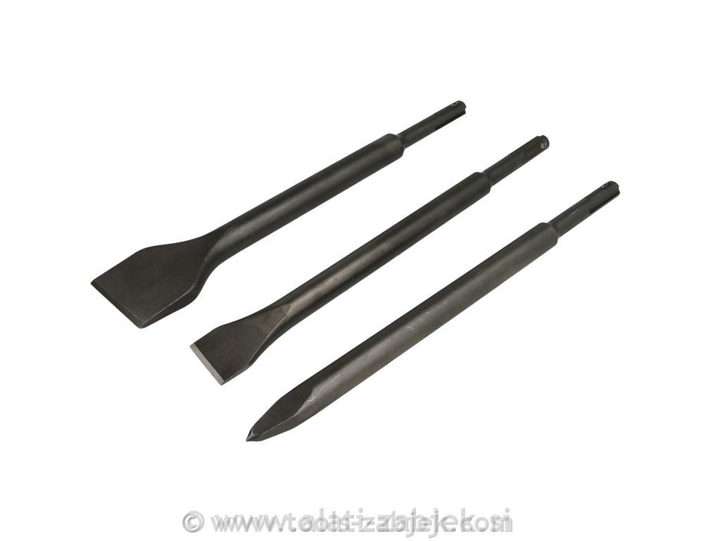 Product description - komplet SDS plus za električna kladiva Set vsebuje: - 1 ravno dleto 250 mm (art. Št. 212 25000) - 1 koničasto dleto 250 mm (art. Št. 212 25001) - 1 lopatica 250 mm, širina 40 mm (art. Št. 212 25014) - teža: 850 g