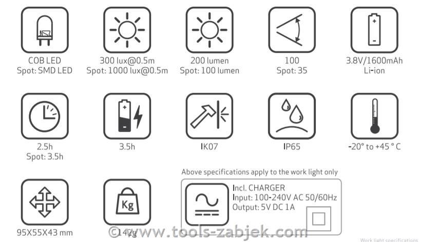- kot dodatna lastnost je žarometa enostavno odstraniti in uporabljati kot ročna svetilka ali nameščena na magnetni površini