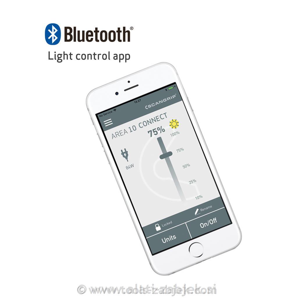 Zaradi kompaktne in majhne teže je AREA 10 CONNECT prenosljiv in enostaven za prenašanje. Priložen je tudi kavelj za prilagodljivo pozicioniranje in se lahko namesti neposredno na STATIVO SCANGRIP. Odporen na prah in vodo, IP65 in opremljen z vgrajenim napajalnikom z vtičnico USB za polnjenje mobilnih naprav.