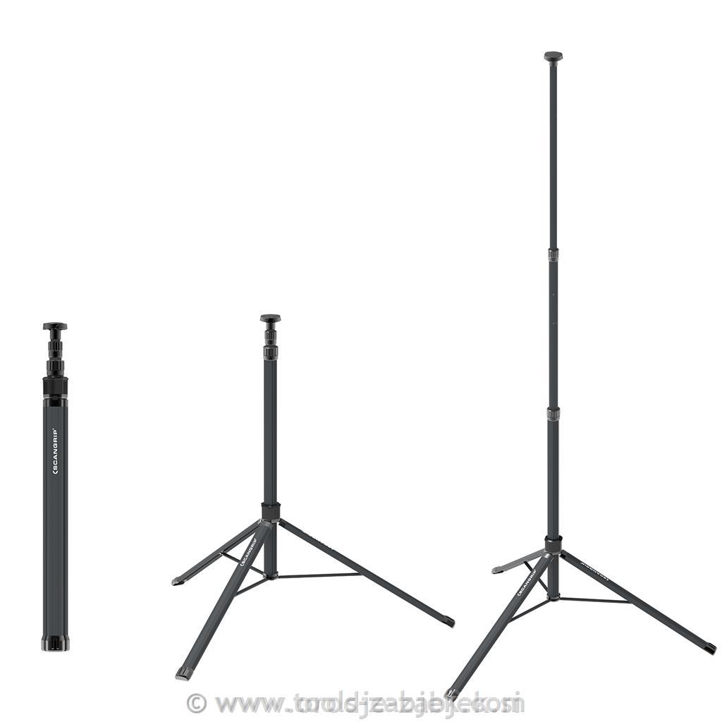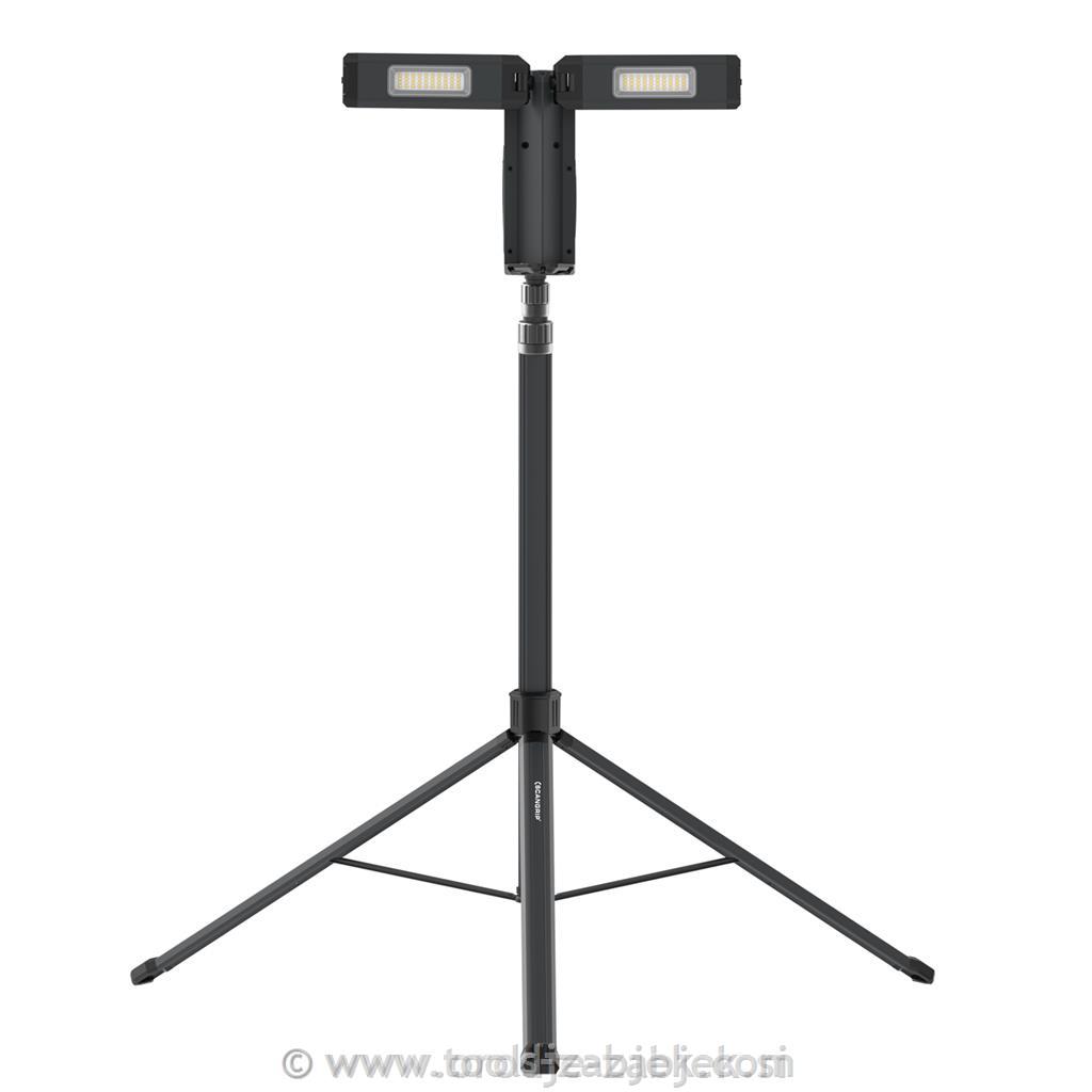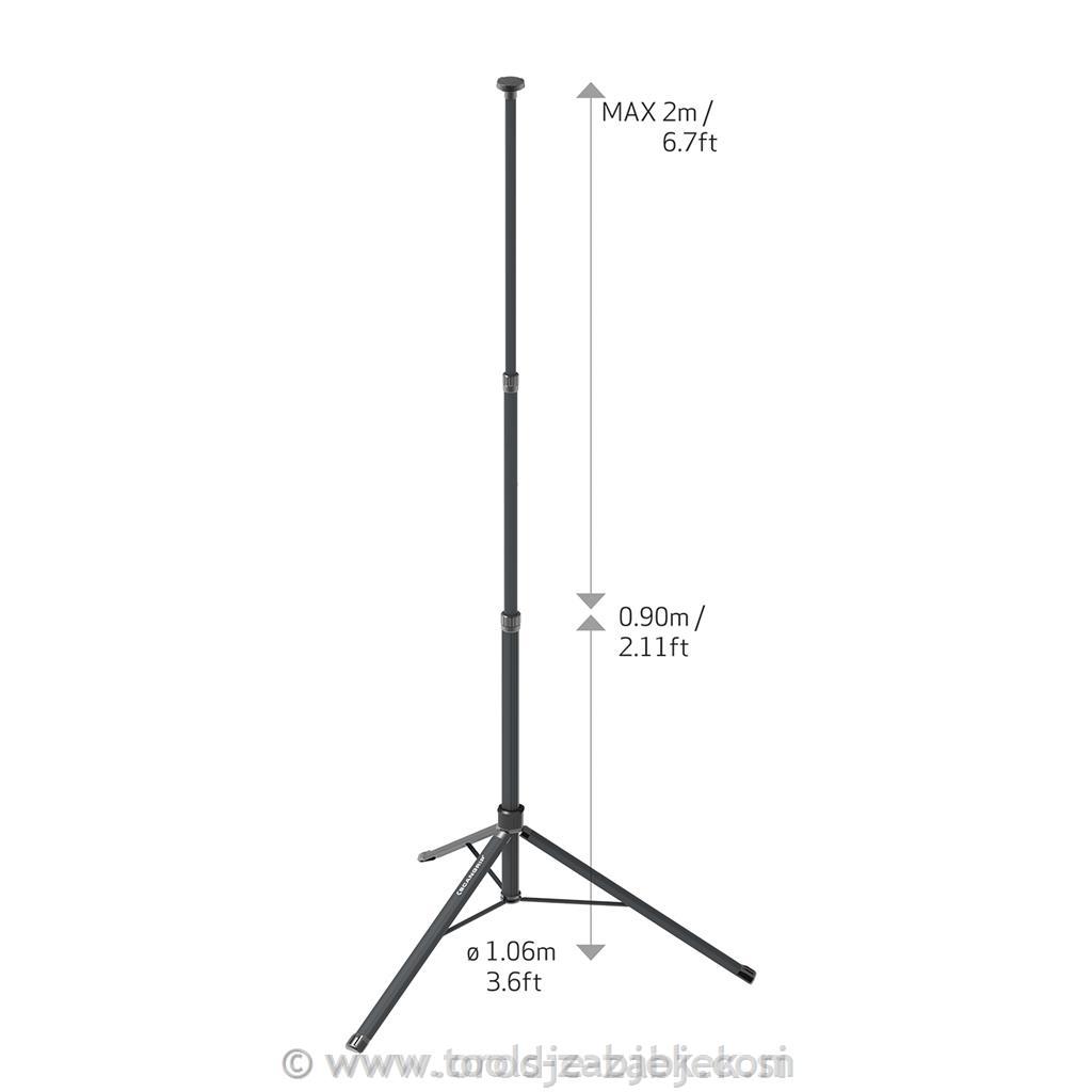 Stojalo je raztegljivo z 0,9 m na 2 m in nudi popolno prilagodljivost za postavitev delovne luči na želeno višino. Funkcija QUICK RELEASE omogoča hitro nastavitev stojala v le nekaj sekundah in ponovno zlaganje, ko je delo opravljeno. V zloženem položaju je zelo kompakten in zasnovan za prenašanje z eno roko.