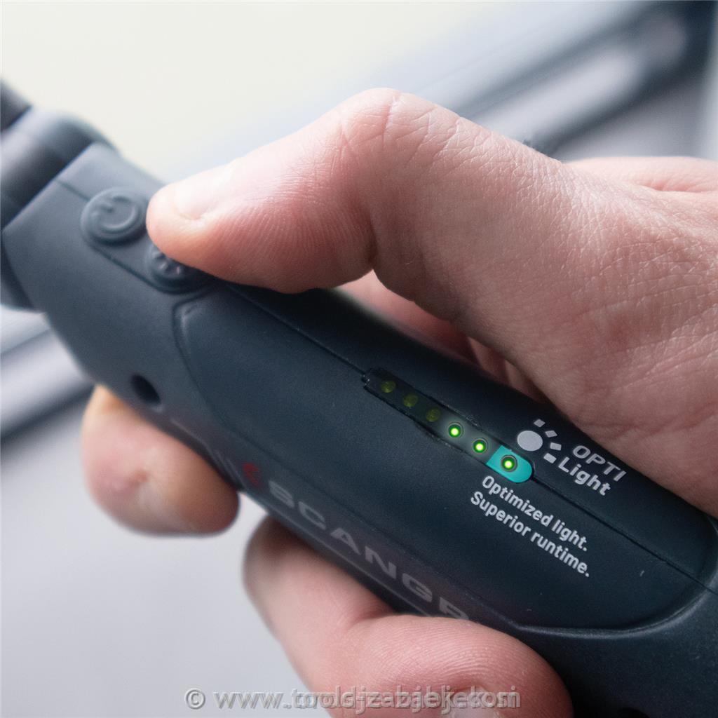 Svetilka ima pregleden indikator stanja baterije, ki vas pravočasno opozori na potrebo po polnjenju, kar omogoča nemoteno delo brez nepričakovanih prekinitev.