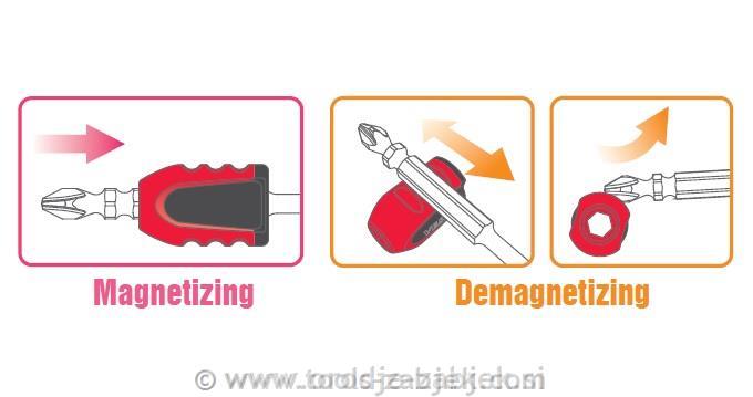 Bitni magnetizator / razmagnetevalnik .  Magnetni lovilec vijakov z dvema vgrajenima neodim magnetoma varno drži vijake.