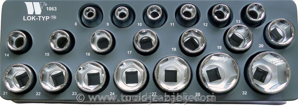 - velikosti: 8, 9, 10, 11, 12, 13, 14, 15, 16, 17, 18, 19, 20, 21, 22, 23, 24, 27, 30, 32mm