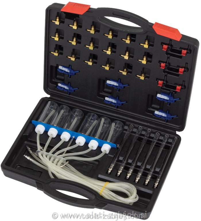 - zasnovan za uporabo na povratni strani injektorja dizelskega sistema s skupnim vodom, meri povratni pretok goriva pri motorjih z do desetimi injektorji v enem preskusu