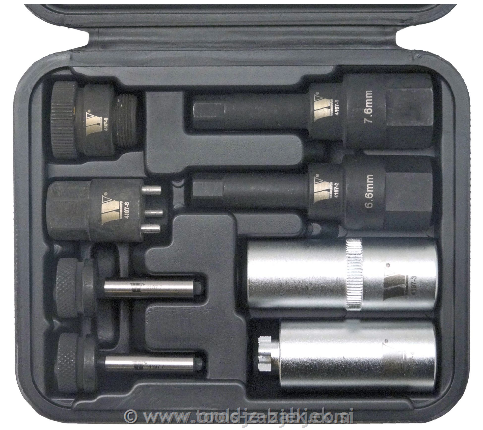 - ta komplet vključuje posebna orodja za odstranjevanje notranjih pritrdilnih elementov injektorjev