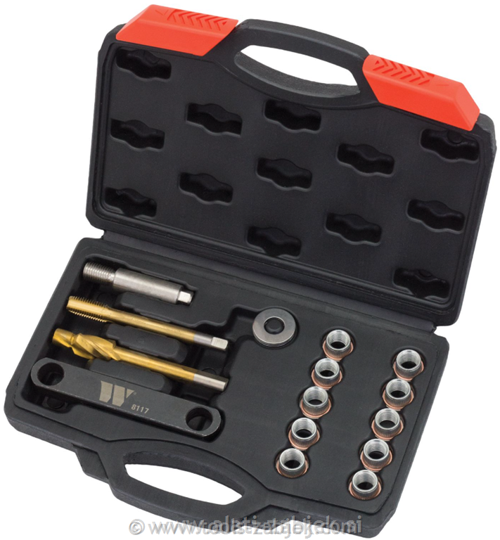 - vključeno: 10 navojnih vložkov, 1 vodnik za vrtanje, 1 stopenjski vrtalnik, 1 čep