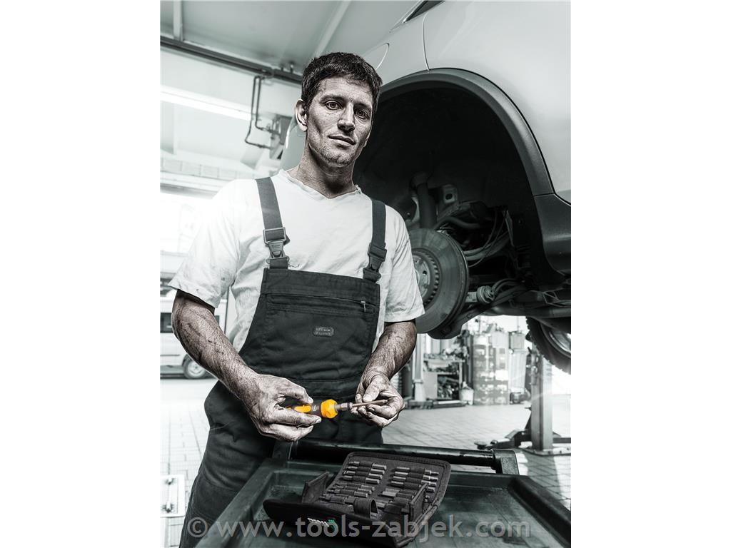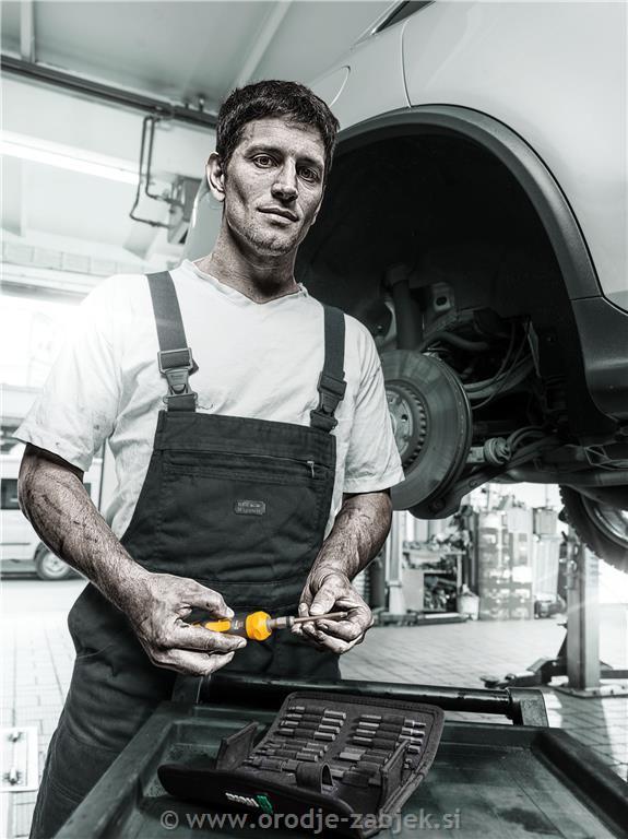 - kompakten in robusten set izvijačev z zamenljivimi rezili in ročno aktivirano funkcijo udarnega ključa