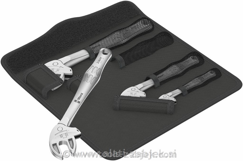 - kompaktna zložljiva torbica s štirimi nastavljivimi viličastimi ključi Joker 6004 pokriva vse metrične in imperialne dimenzije v aplikacijah