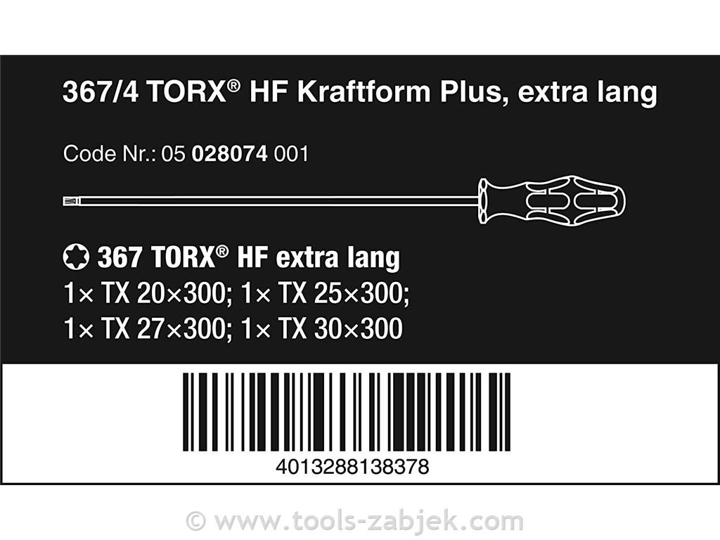 • 4-piece set of long screwdrivers 367/4 TORX ® HF Kraftform Plus 300 mm WERA