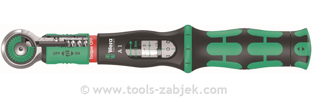 Momentni ključ z drsnim mehanizmom. Ko je nastavljeni navor dosežen, orodja ne morete preveč zategniti, tako da ni mogoče uporabiti prevelikega navora. Območje nastavitve od 2 do 12 Nm za nadzorovano delovanje navora v smeri urinega kazalca in nasprotni smeri urinega kazalca. Enostavna nastavitev in shranjevanje privzete vrednosti: Zvočni in taktilni kliki ob doseganju vrednosti skale olajšajo varno nastavitev želene vrednosti navora. S funkcijo Torque Lock za uporabo kot standardna raglja brez funkcije vrtilnega momenta. maks. prelomni moment glave ¼" po DIN 3122. Povratni kot samo 5° omogoča uporabo raglje tudi v zaprtih prostorih in torej tudi za aplikacije z zasučnimi koti.