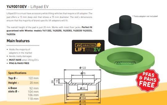 Podloga za krokodil dvigalko za uporabo pri dviganju električnih vozil. Univerzalna velikost - paše na večino dvigalk in sprejme večino adapterjev za dvig električnih vozil.