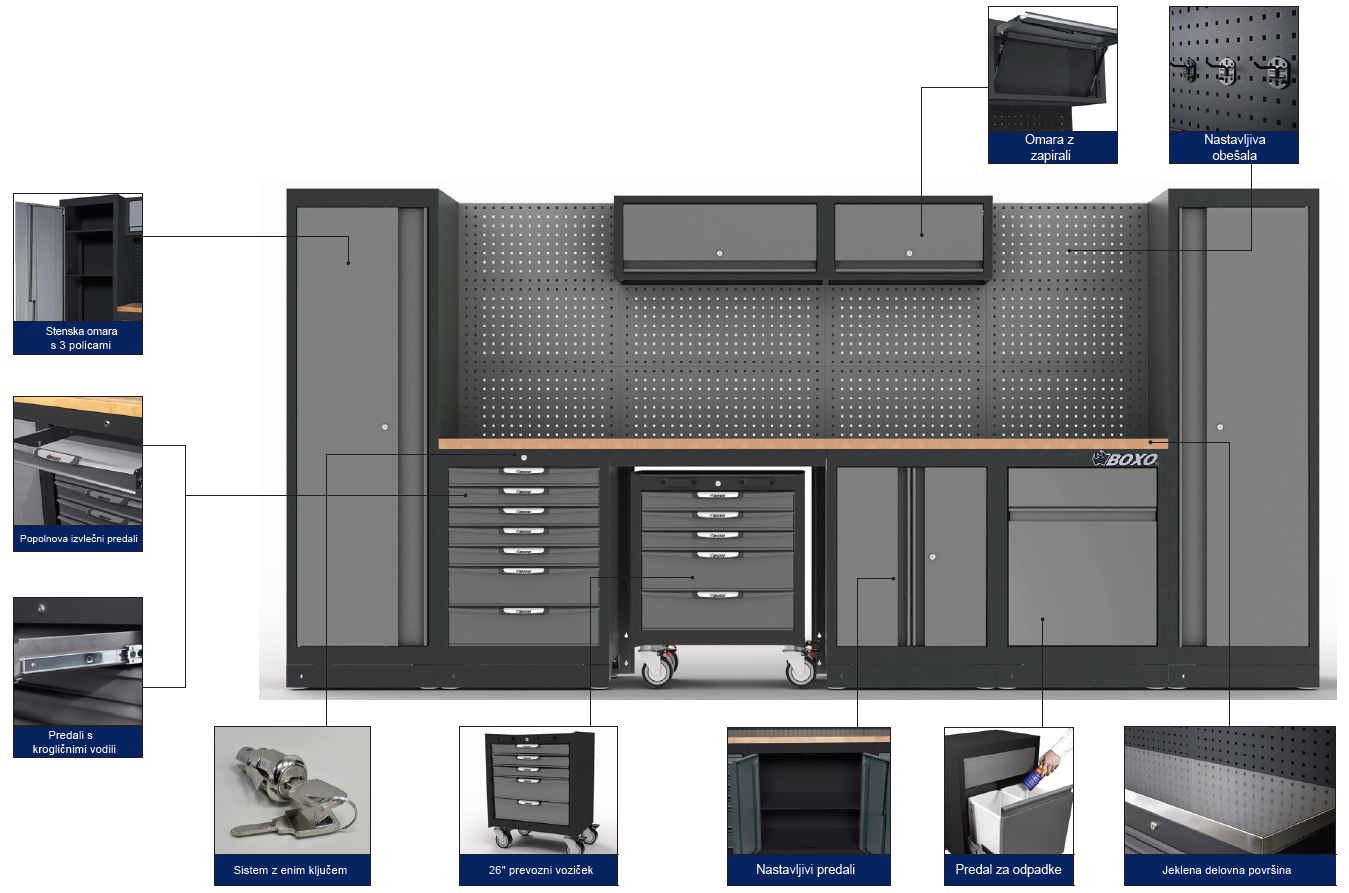 We offer you various options of organized storage systems for different types of workshops, regardless of the activity you are engaged in. Boxo is a recognized manufacturer of trolleys, organized sets and other tools. You can combine the workshop modules according to your wishes, needs and possibilities. Contact our sales advisors for more information. Together, you will find the best and most affordable solution for you. OSM configurator