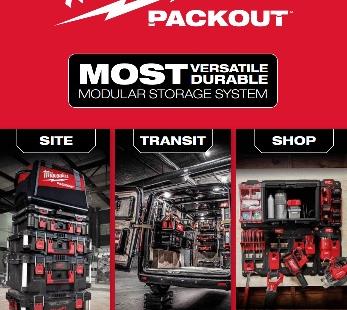 The MILWAUKEE® PACKOUT™ modular storage system revolutionizes tool transportation, organization, and storage. It is designed to let users interchange and lock together a wide variety of tough toolboxes, organizers, and soft storage solutions in numerous configurations.