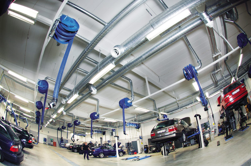 Exhaust gases produced by cars, motorcycles and trucks are hazardous for people who work in car workshops.